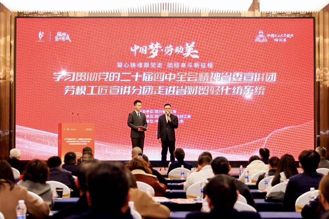 凝心铸魂跟党走,团结奋斗新征程。11月28日,学习贯彻党的二十届四中全会精神省委宣讲团劳模工匠宣讲分团走进省财贸轻化纺系统。省总工会党组成员、副主席徐真彦出席并讲话。中国航油西南公司党委副书记、总经理戴钧致辞。