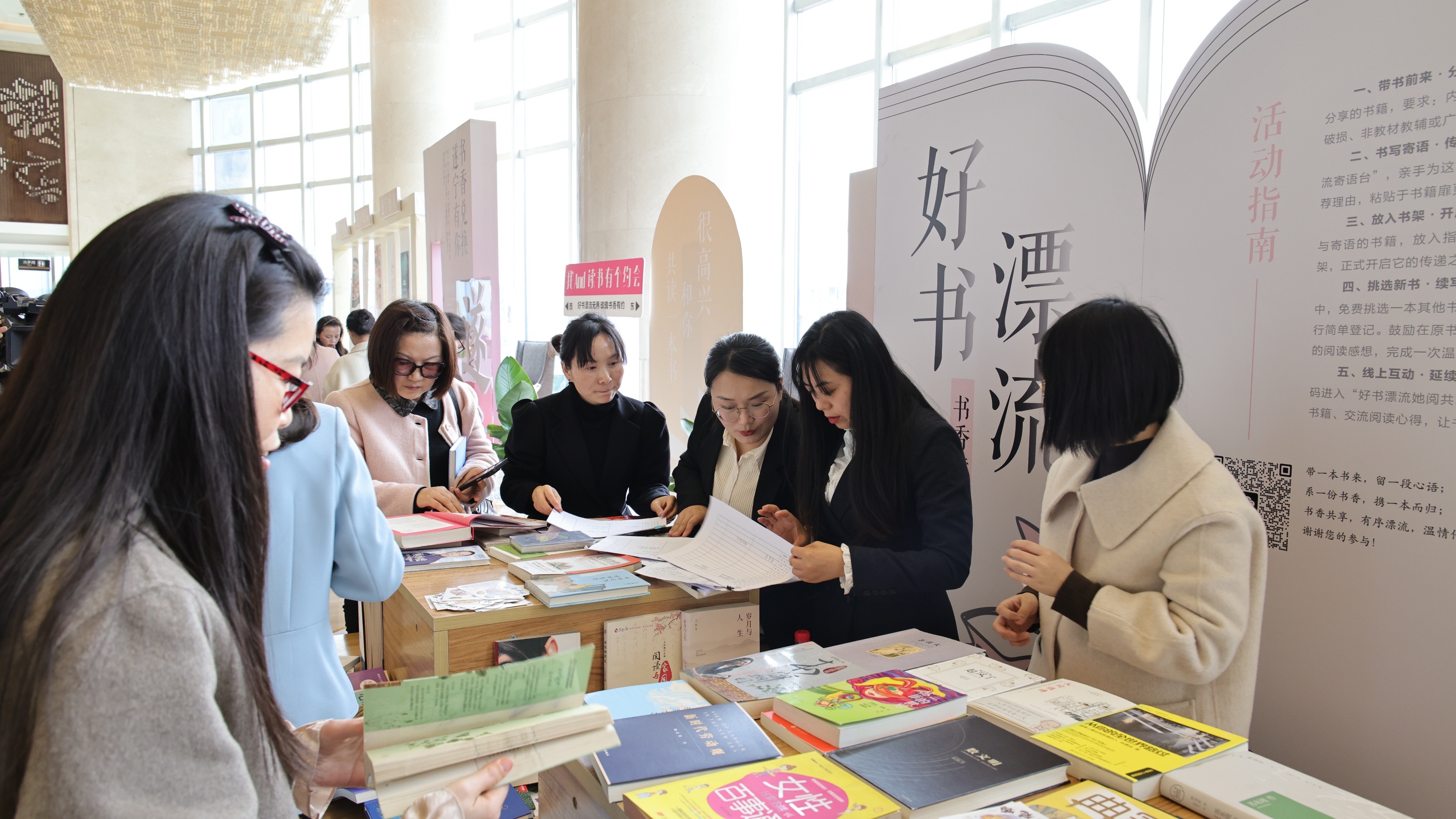 活动现场,与会领导为全国第十三届“书香三八”读书活动、四川省总工会第十二届“玫瑰书香”职工家庭文化建设活动获奖代表颁奖。会场外,“好书漂流”与“书香兑换·遂宁有你”活动同步开启,与会嘉宾带着自己喜爱的书籍现场手写推荐语,并挑选一本他人推荐的书籍,完成知识与温暖的传递。此外,与会嘉宾还前往沱牌舍得集团有限公司观摩学习。